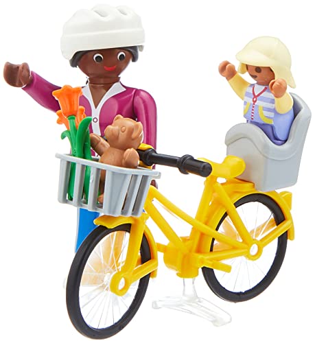 - Comprend un vélo pour femme adulte avec siège pour bébé, un fauteuil roulant mobile pour personnage d'enfant, etc. Parfaitement combinable avec le jeu Maison de ville de Playmobil.
